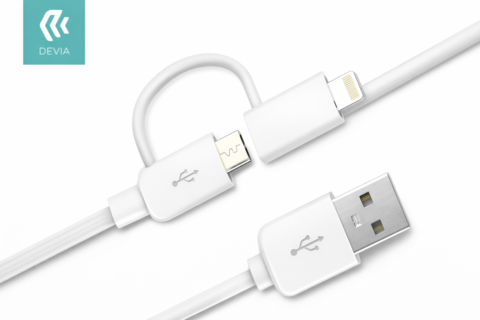 Cable 2 en 1 diseñado para cargar dispositivos con conector Lightning y Micro USB usando un solo cable. Ideal para quienes usan distintos equipos y quieren menos cables, más orden.